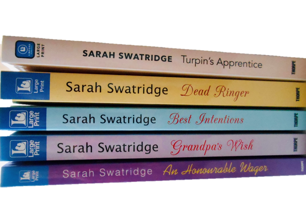 Novels available via Amazon, Waterstones and The Reading House or borrow them from your library (Large Print section).